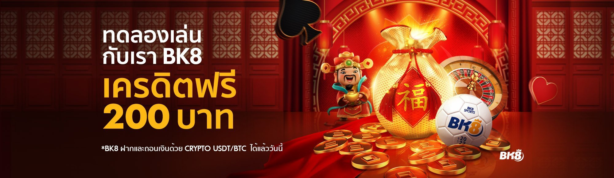 เพื่อเป็นการอวยพรให้ท่านสมาชิกโชคดีทางคาสิโน BK8 ให้ทำการเพิ่มโบนัสทุกการเดิมพันเป็น 100% จากยอดฝากเงินของท่าน