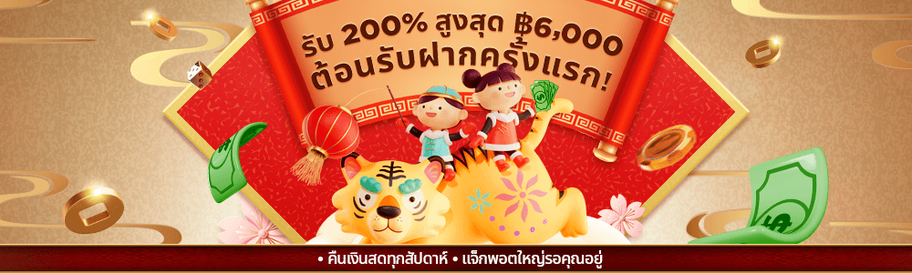 ฝากเงินครั้งแรก! รับโบนัส 200% สูงสุด 6,000 บาท สำหรับการฝากครั้งแรก + แจกเครดิตฟรี